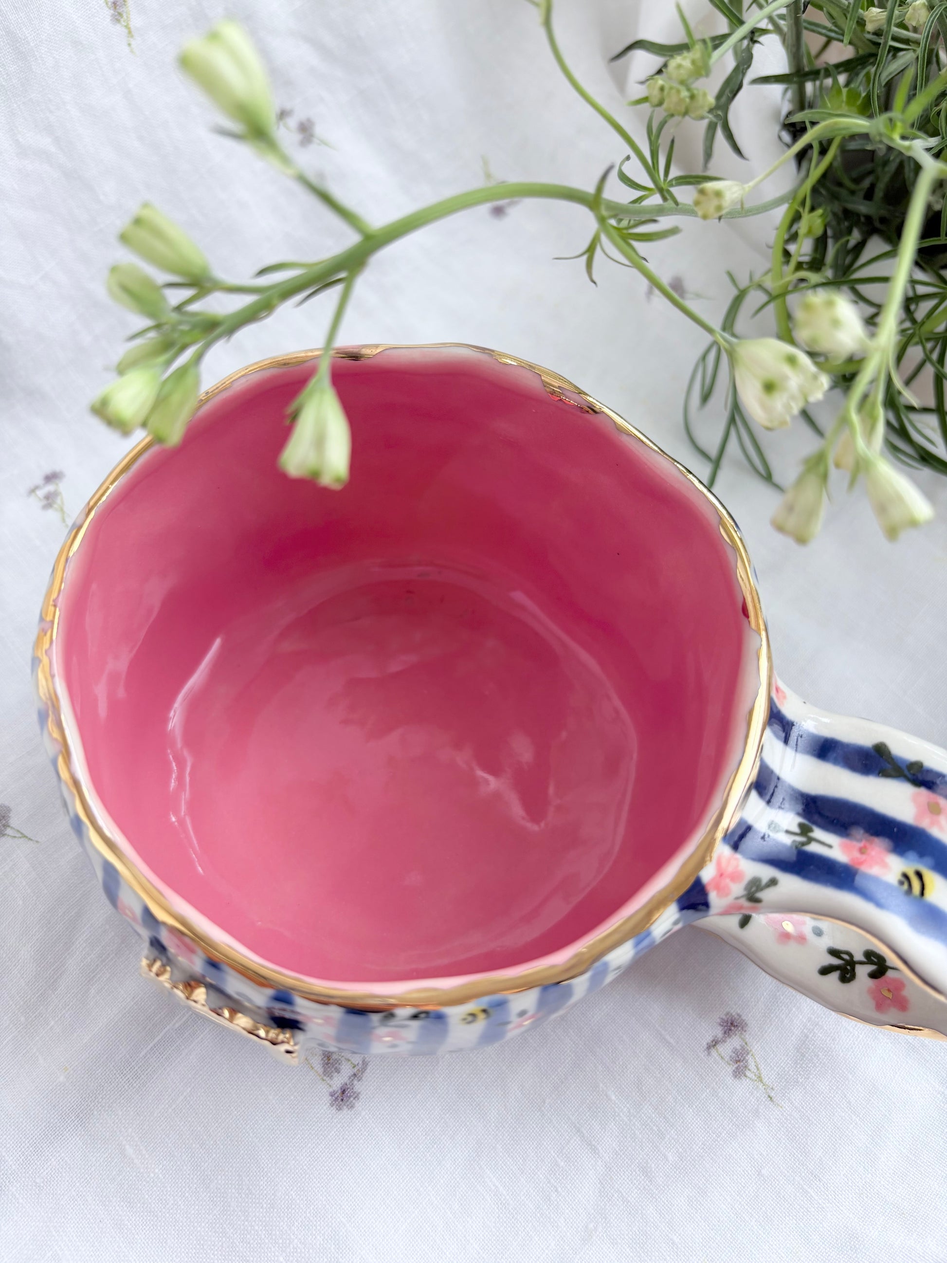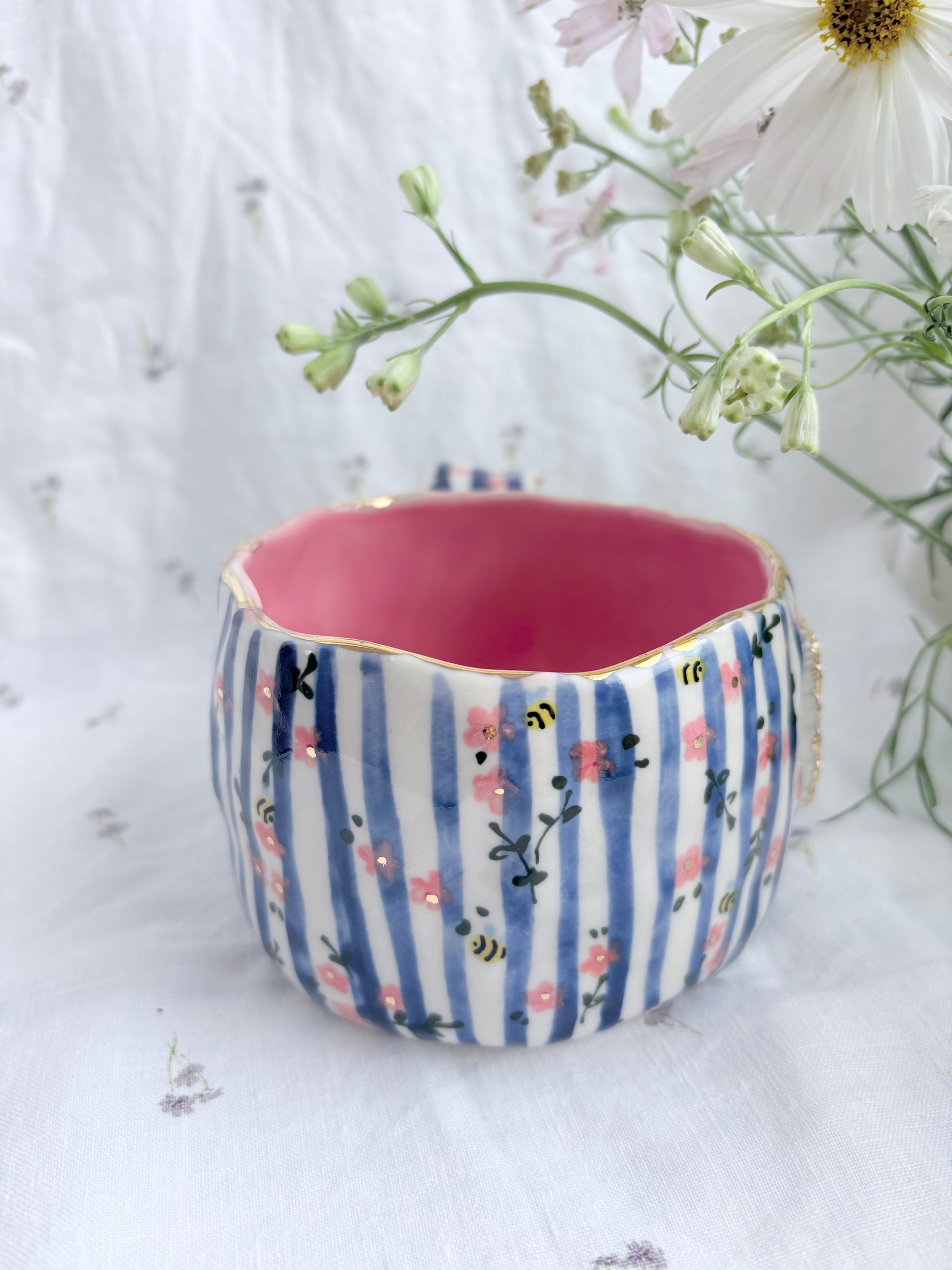 🧚made from mid fire clay, underglaze, food safe glaze and 14k gold lustre