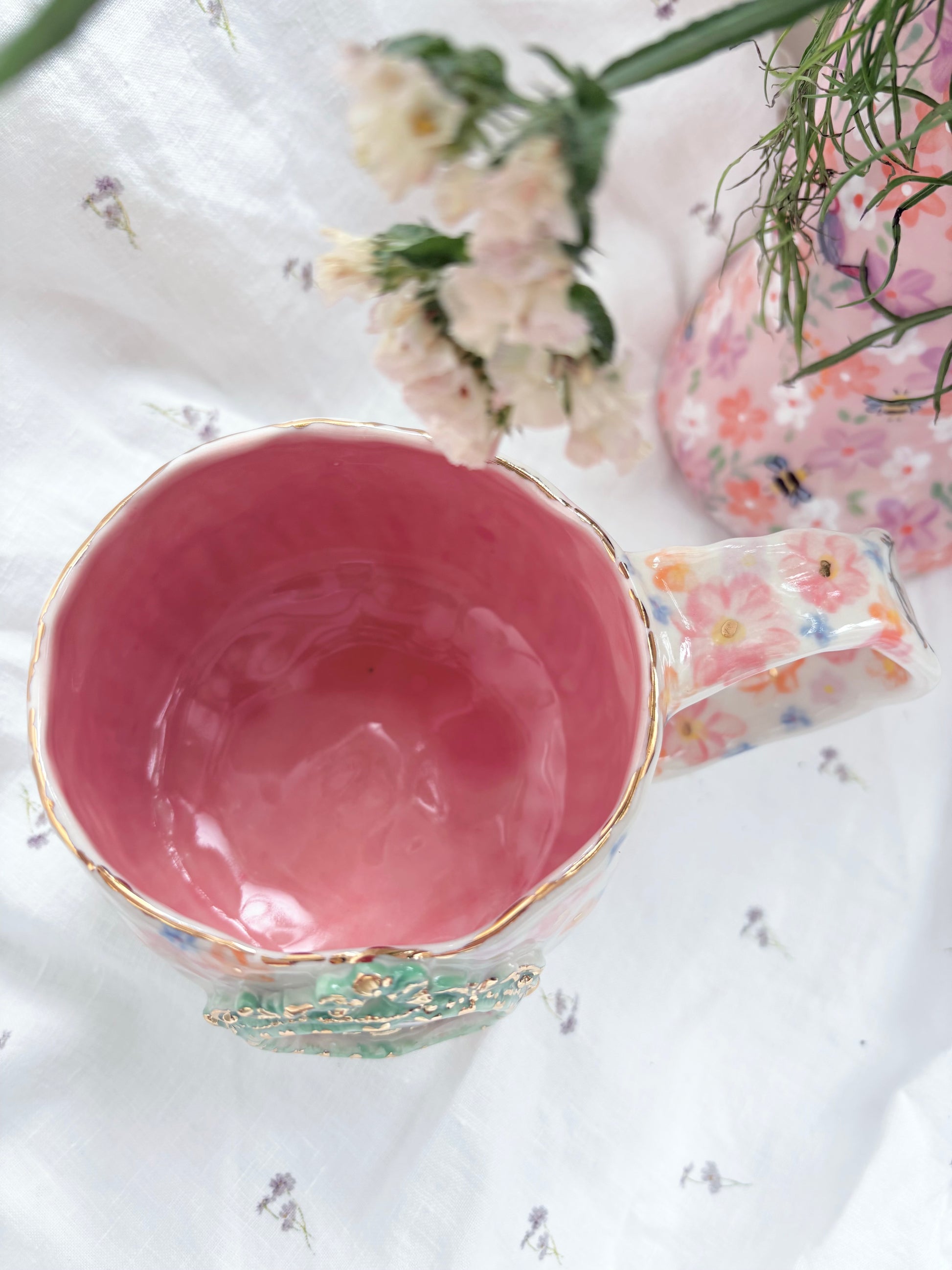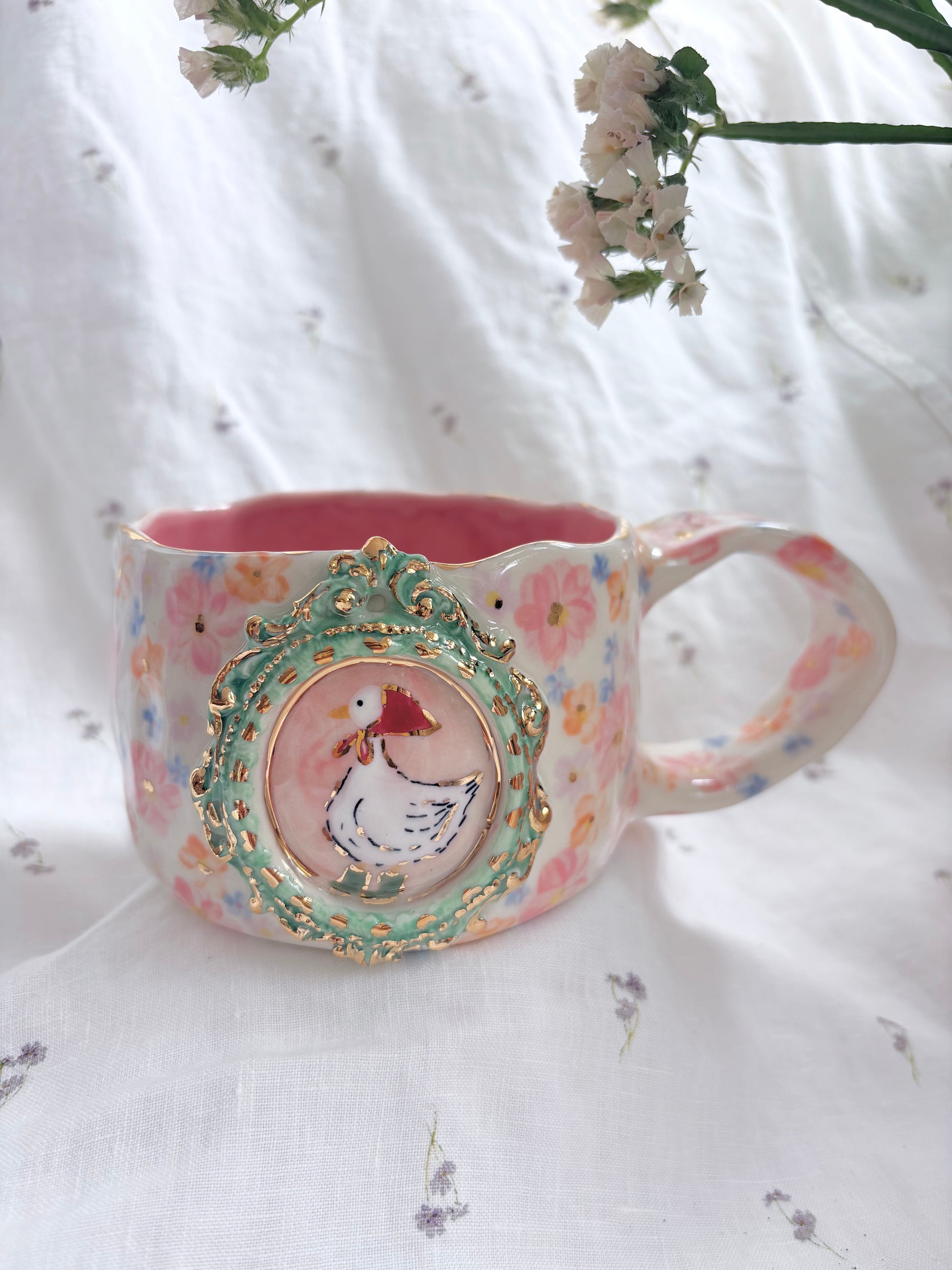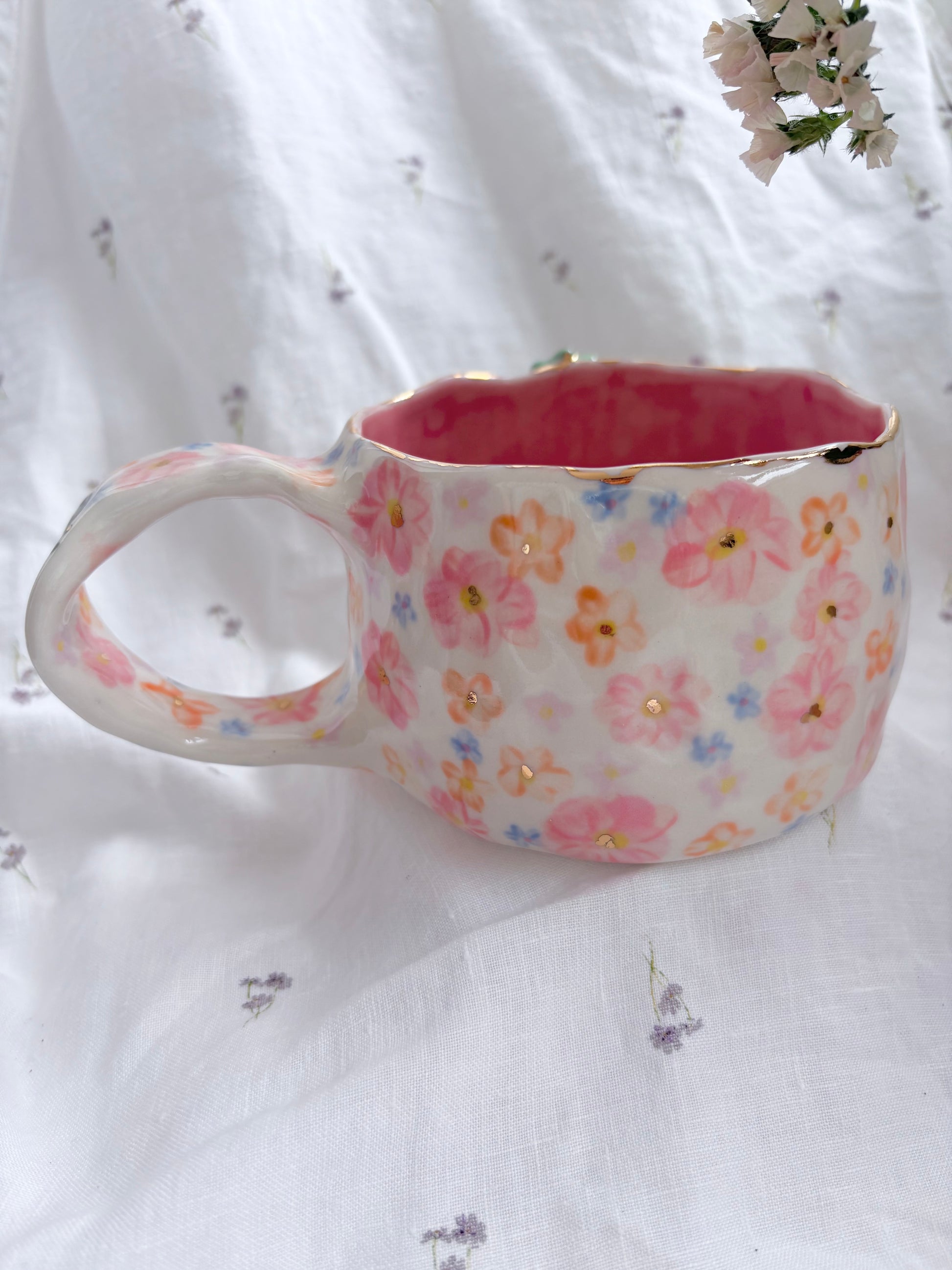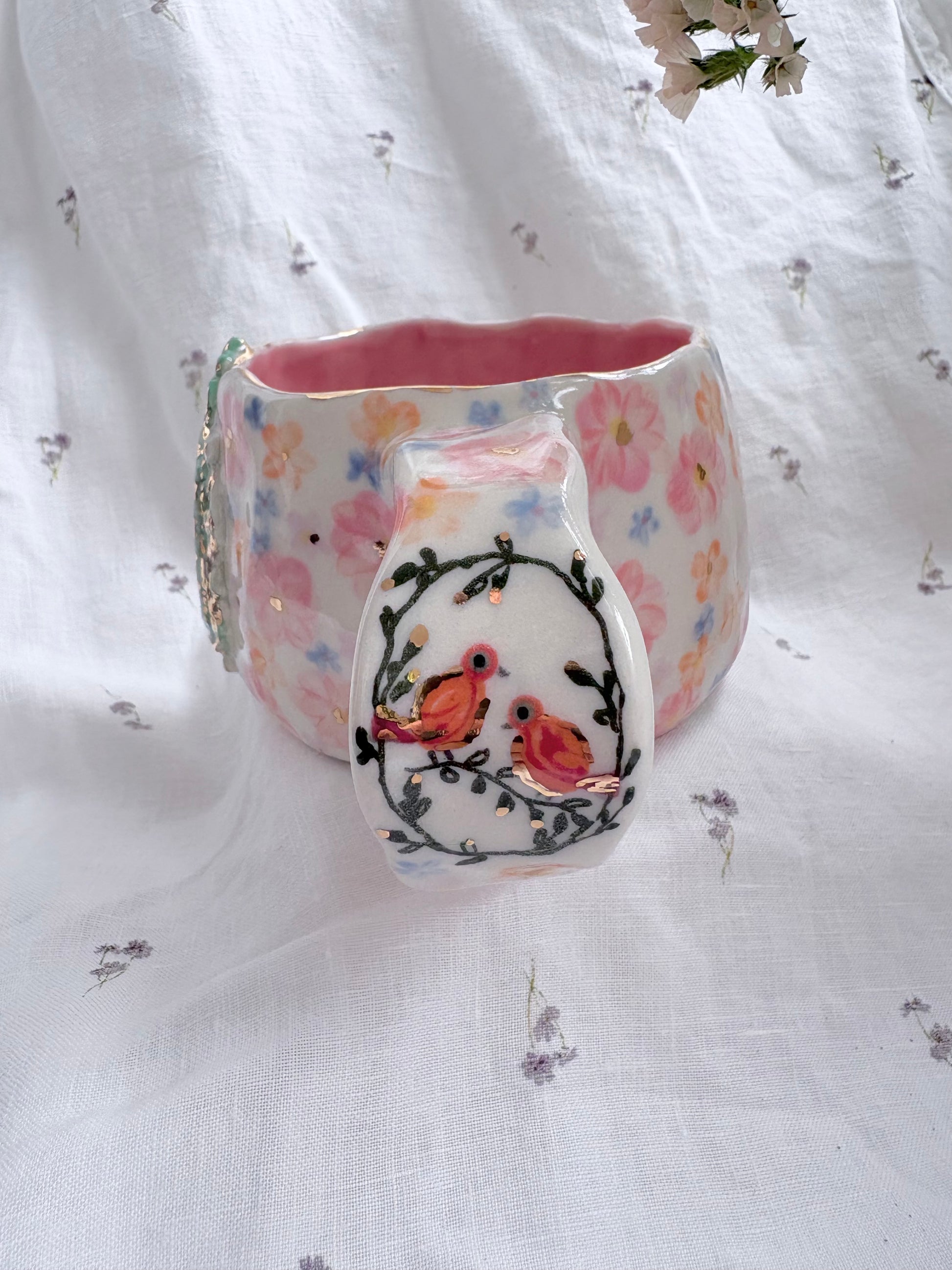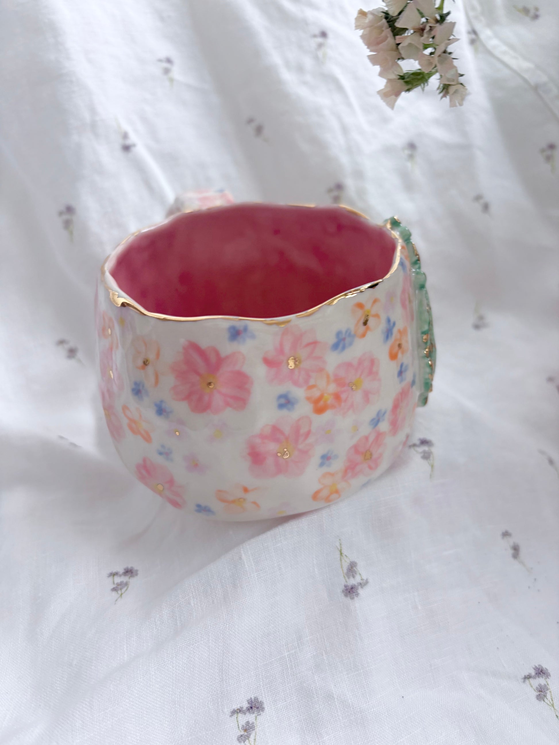 🧚made from mid fire clay, underglaze, food safe glaze and 14k gold lustre