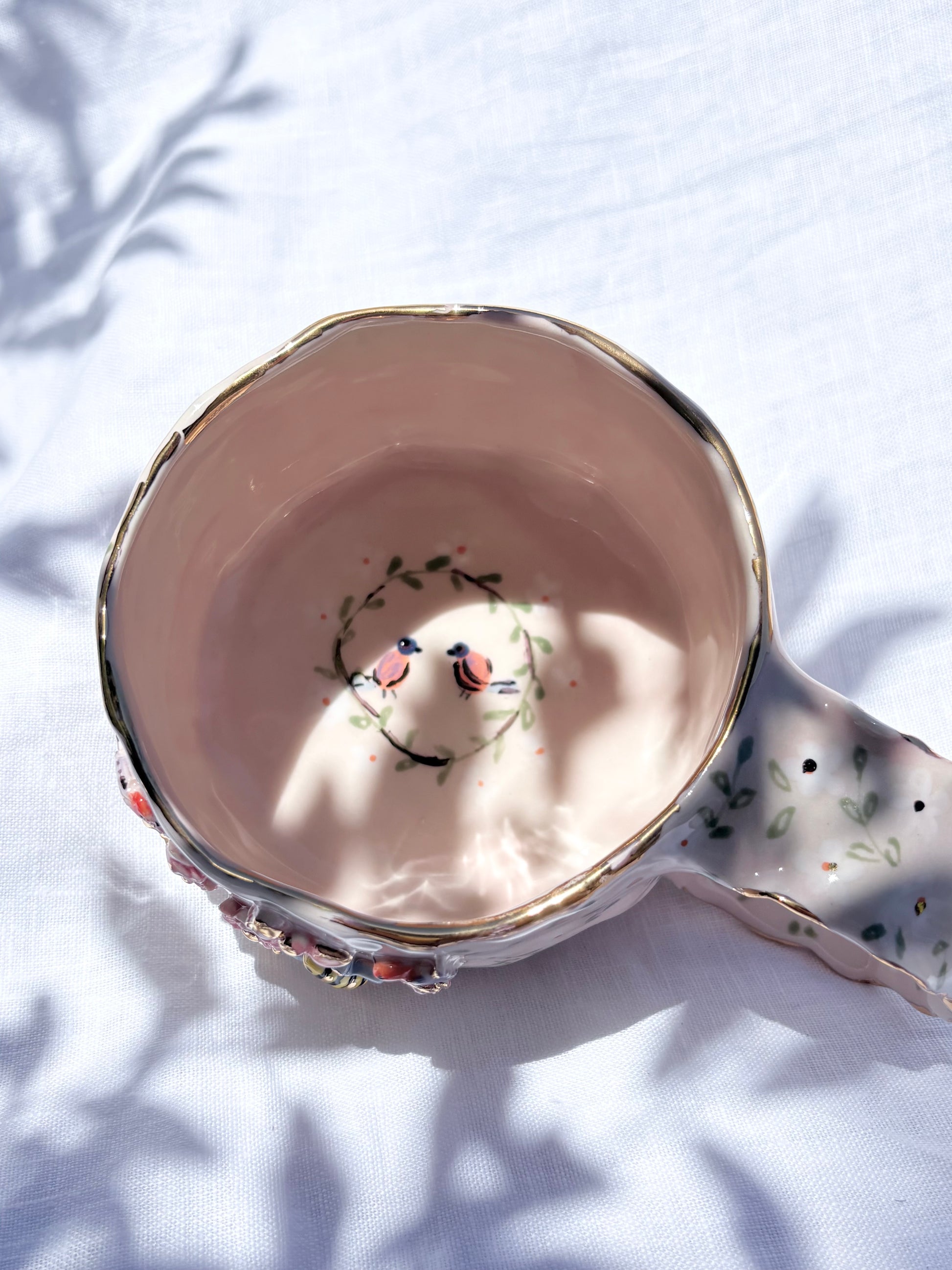 🧚made from mid fire clay, underglaze, food safe glaze and 14k gold lustre