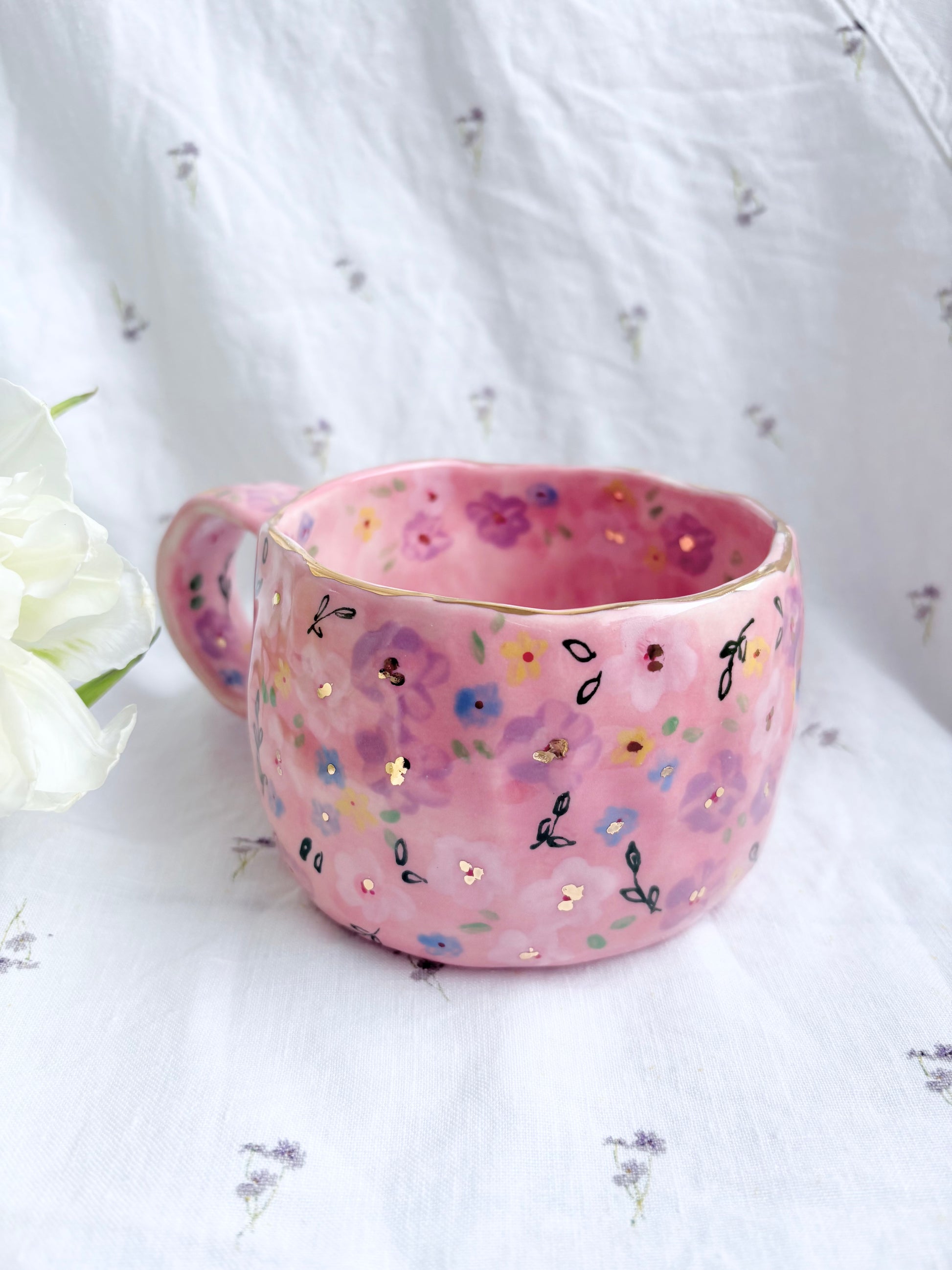 🧚made from mid fire clay, underglaze, food safe glaze and 14k gold lustre