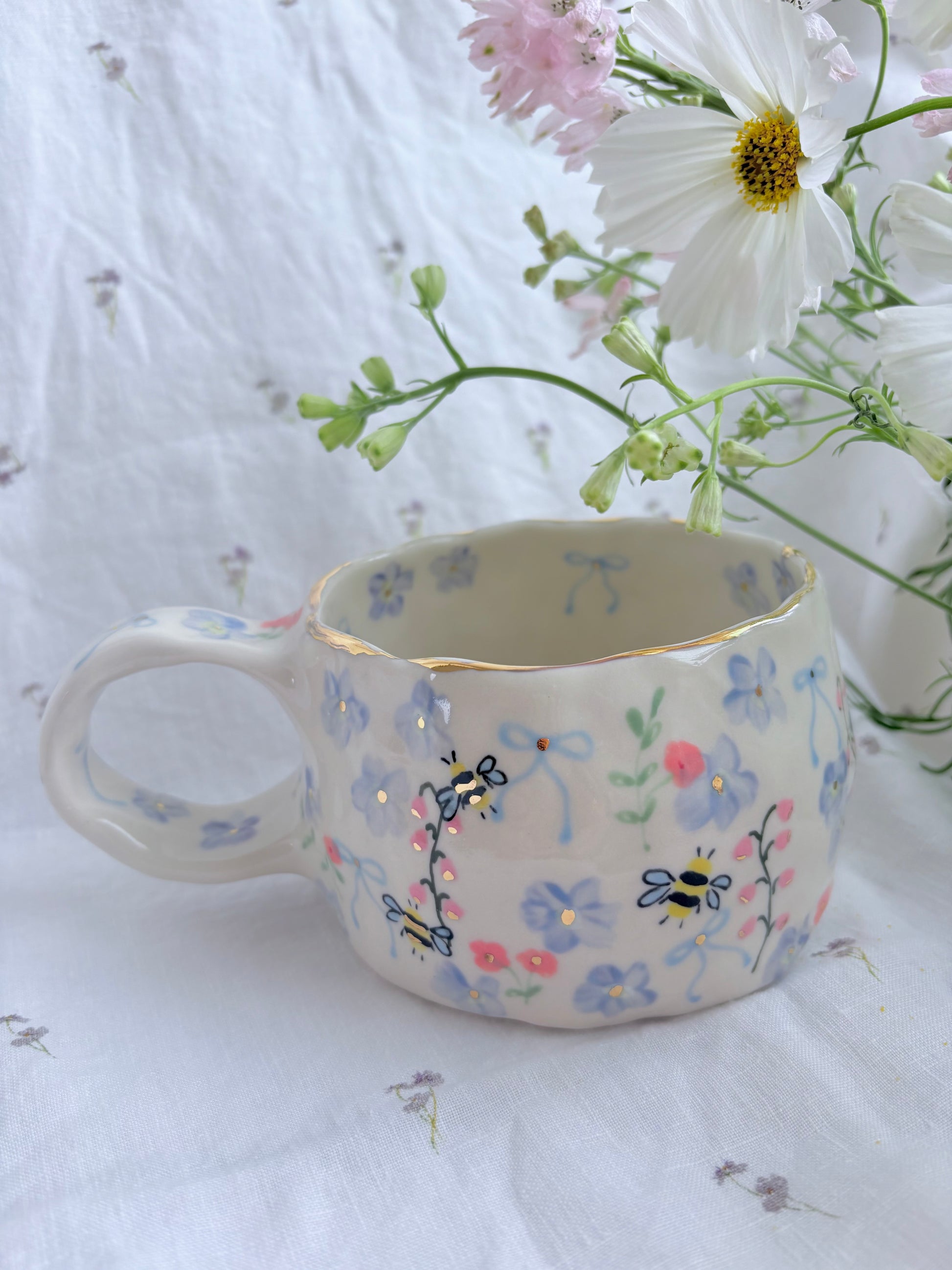 🧚made from mid fire clay, underglaze, food safe glaze and 14k gold lustre