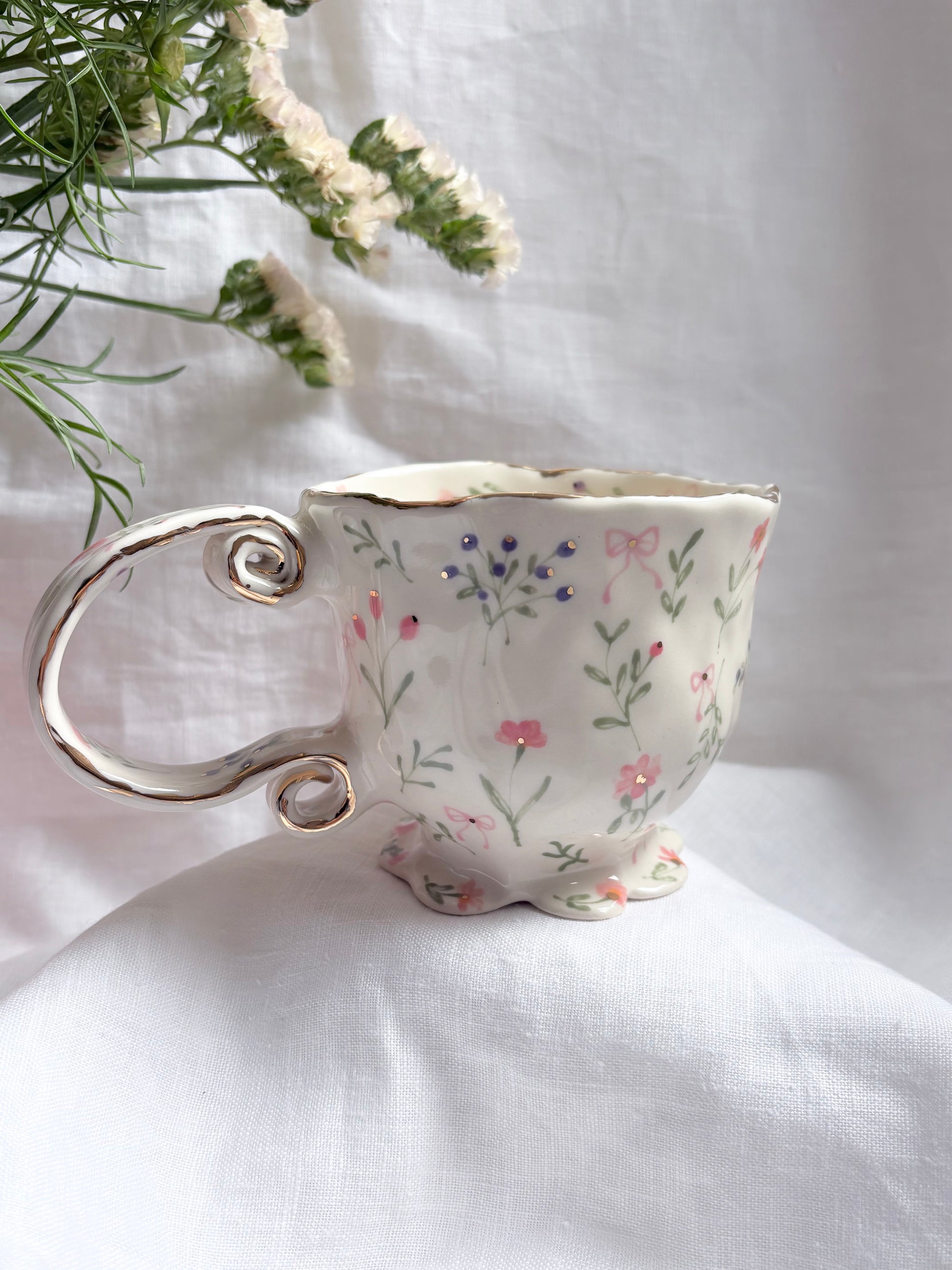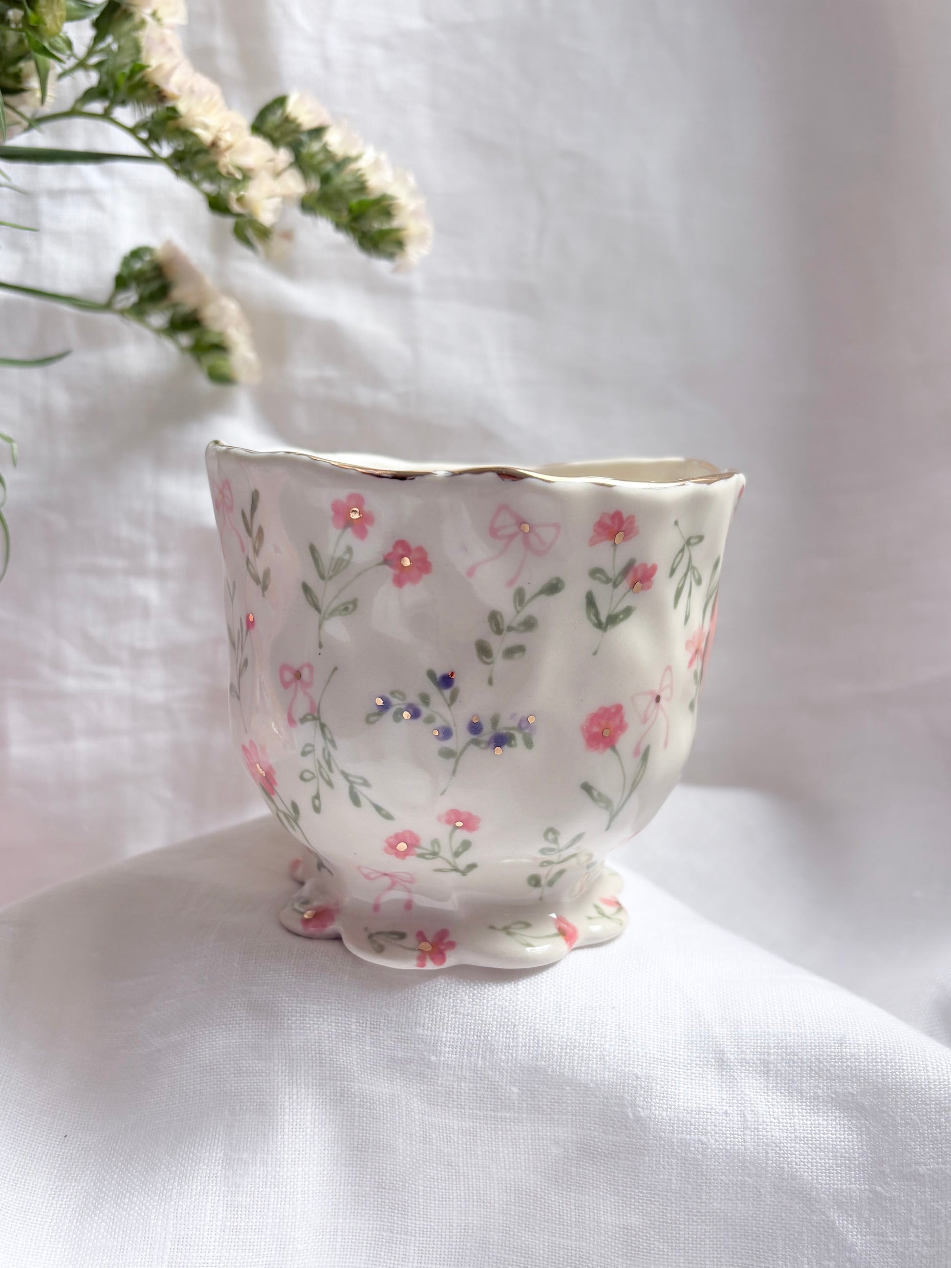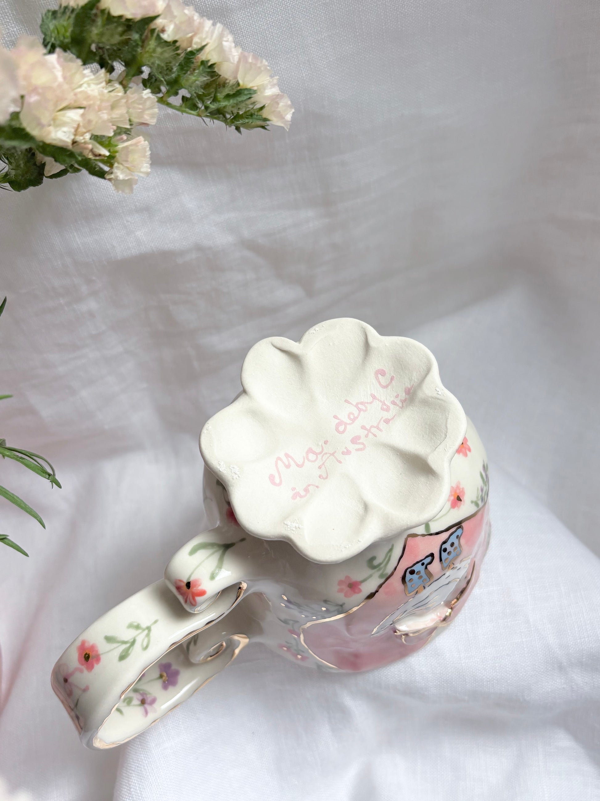 🧚made from mid fire clay, underglaze, food safe glaze and 14k gold lustre