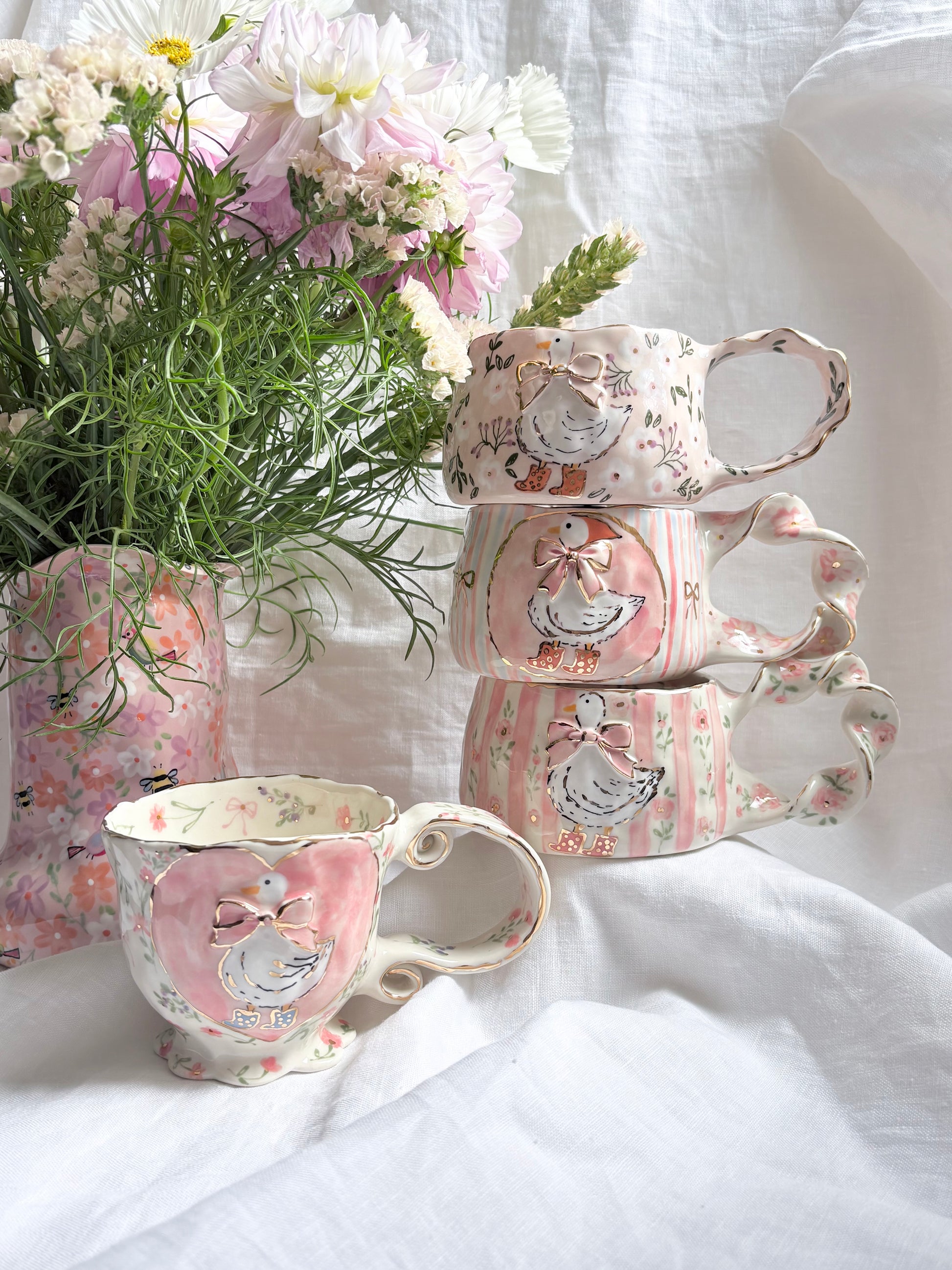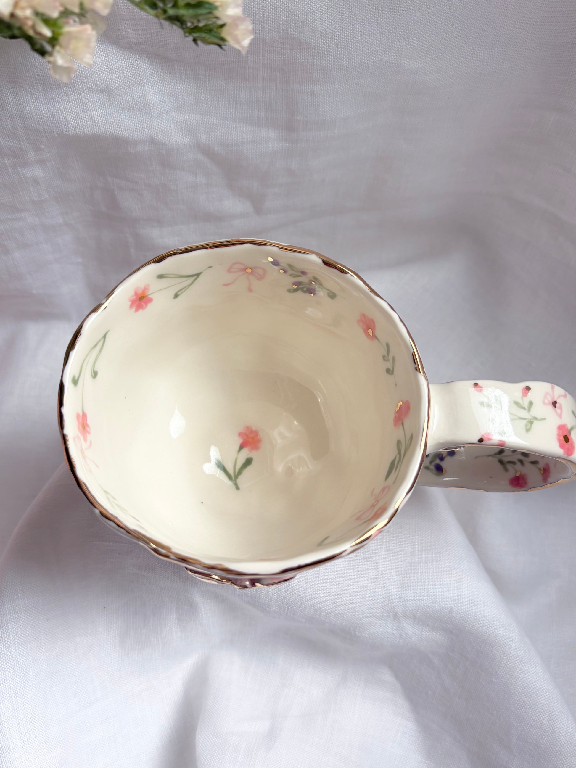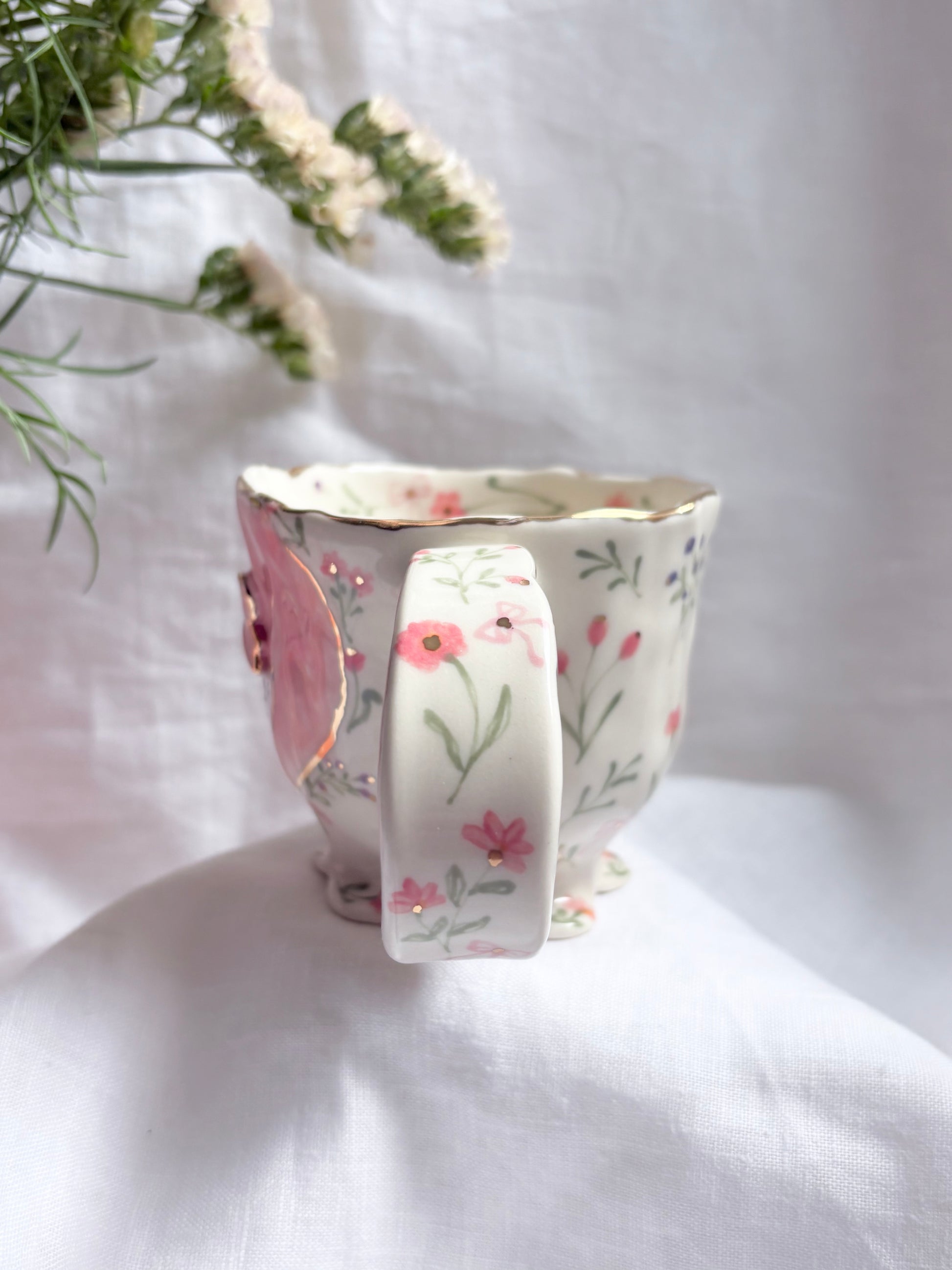 🧚made from mid fire clay, underglaze, food safe glaze and 14k gold lustre