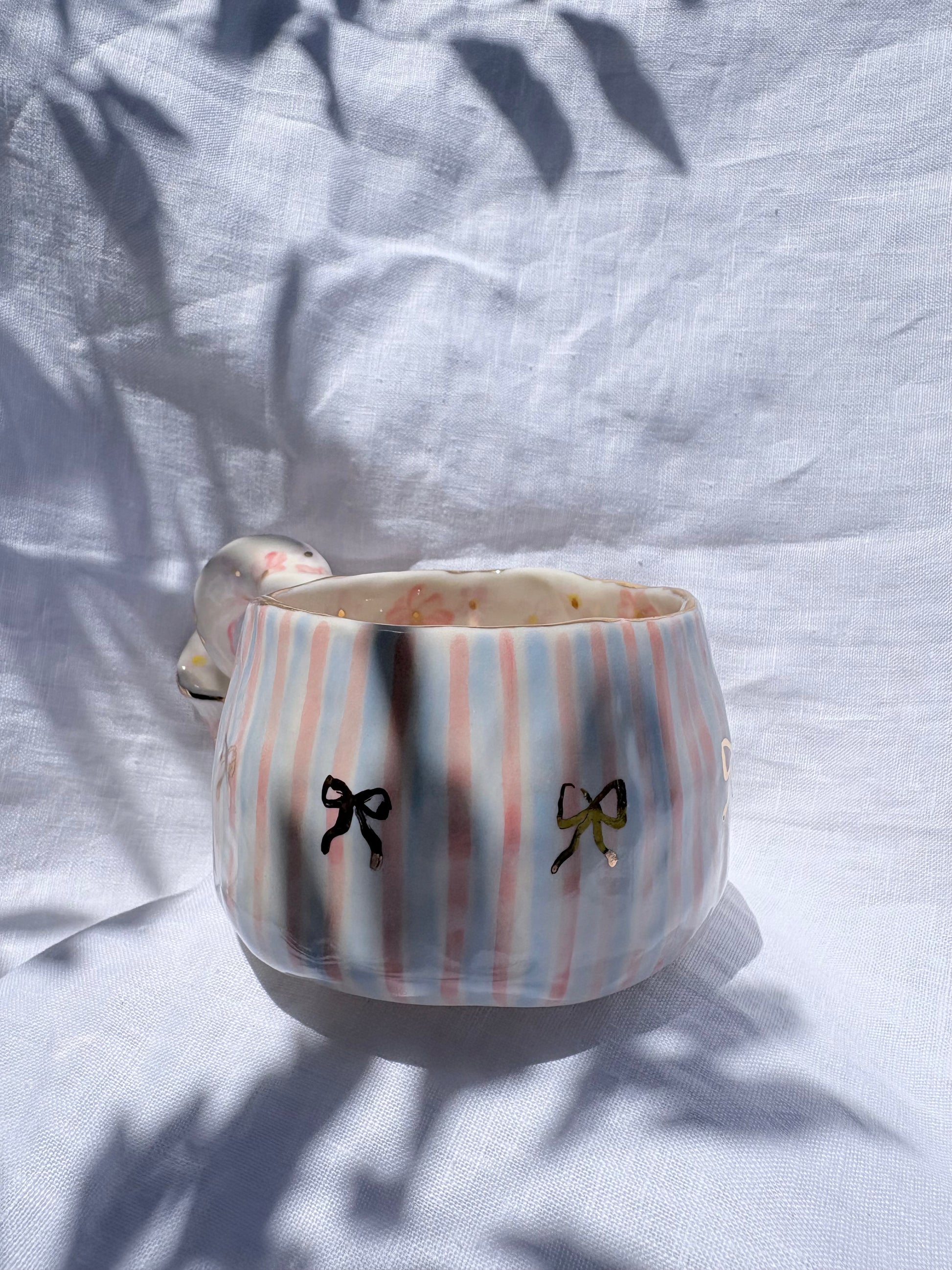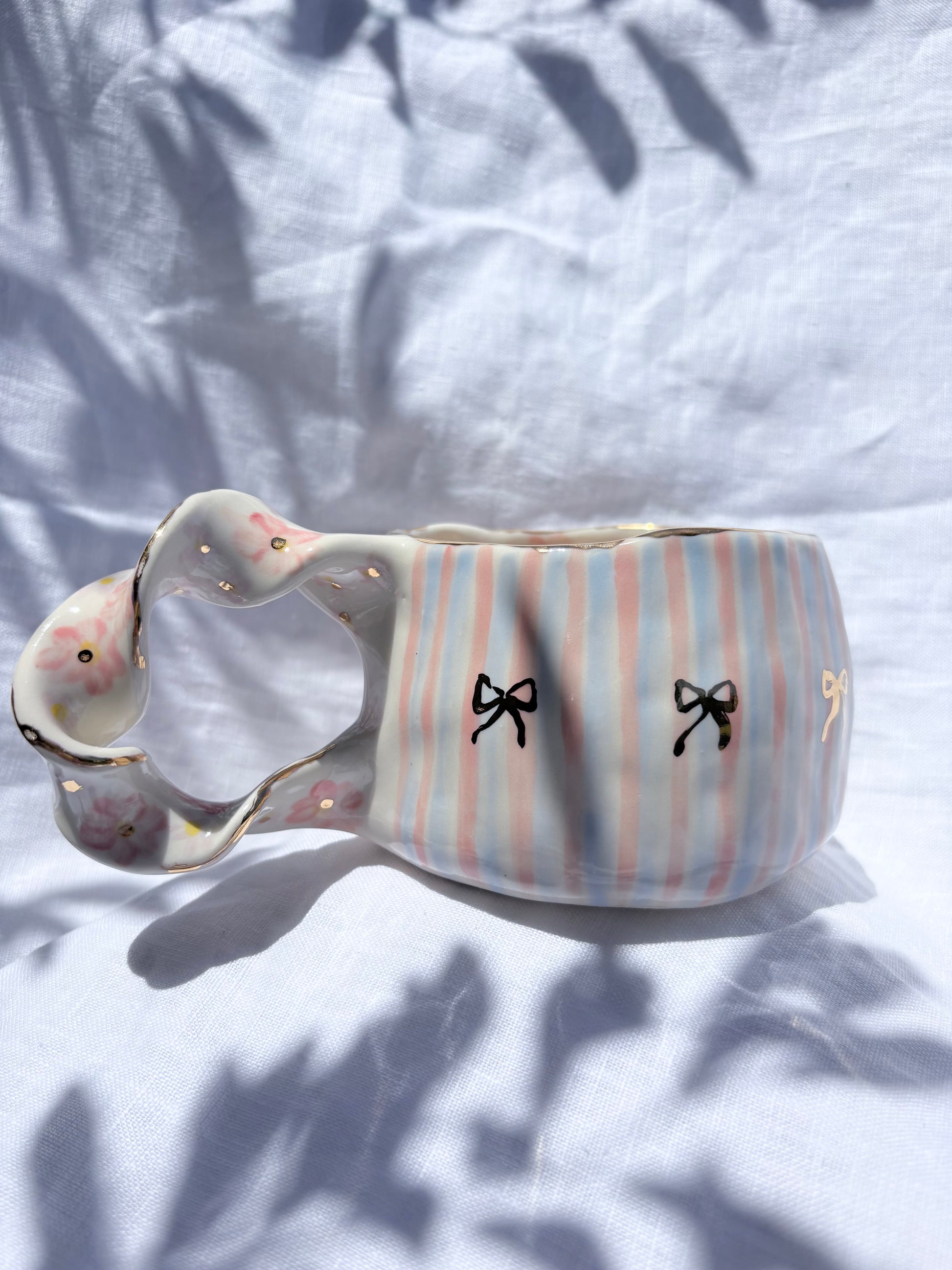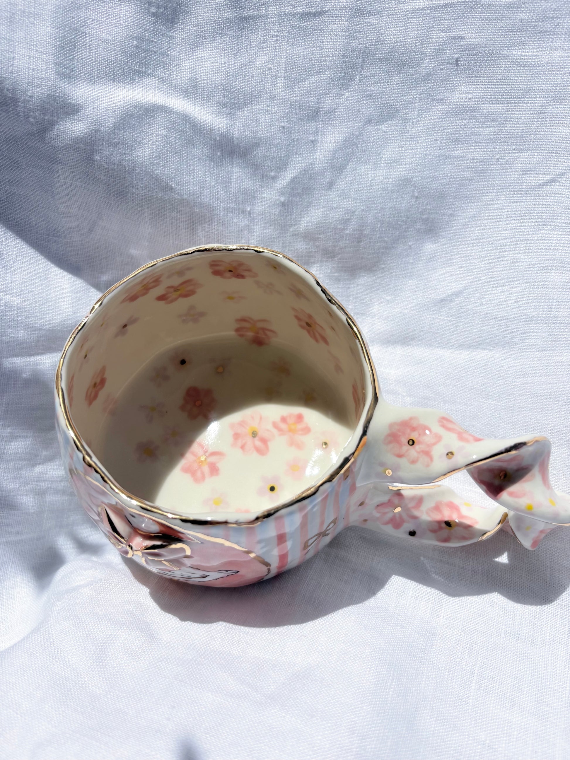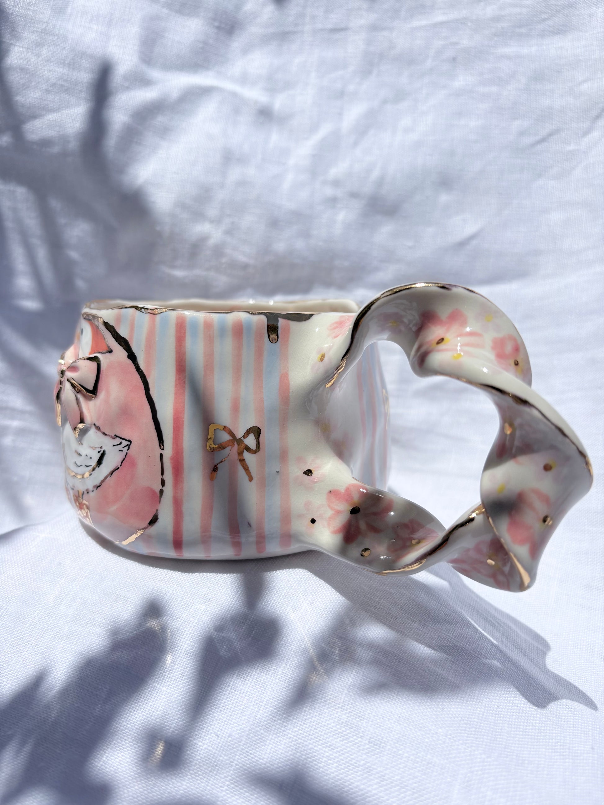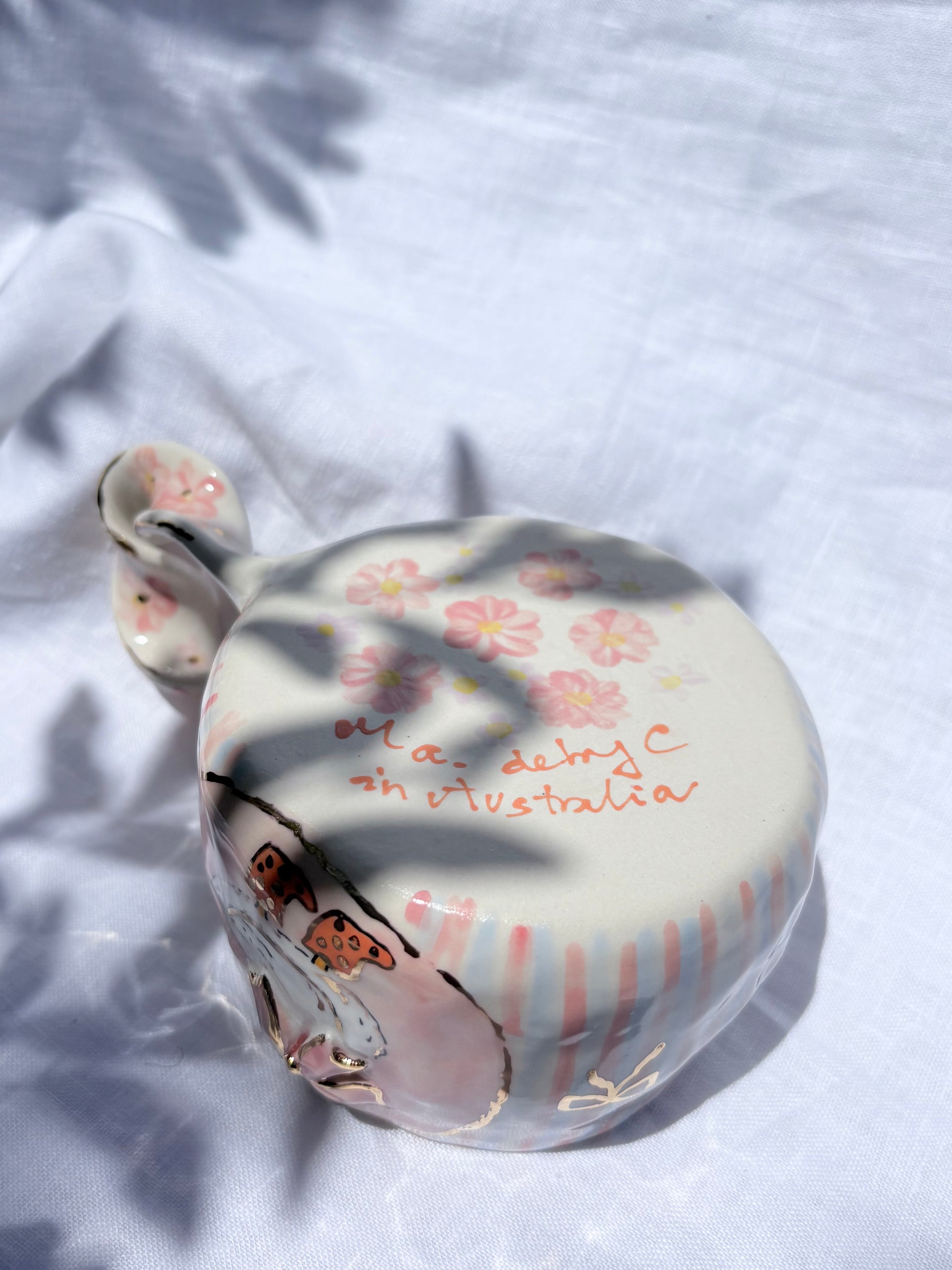 🧚made from mid fire clay, underglaze, food safe glaze and 14k gold lustre