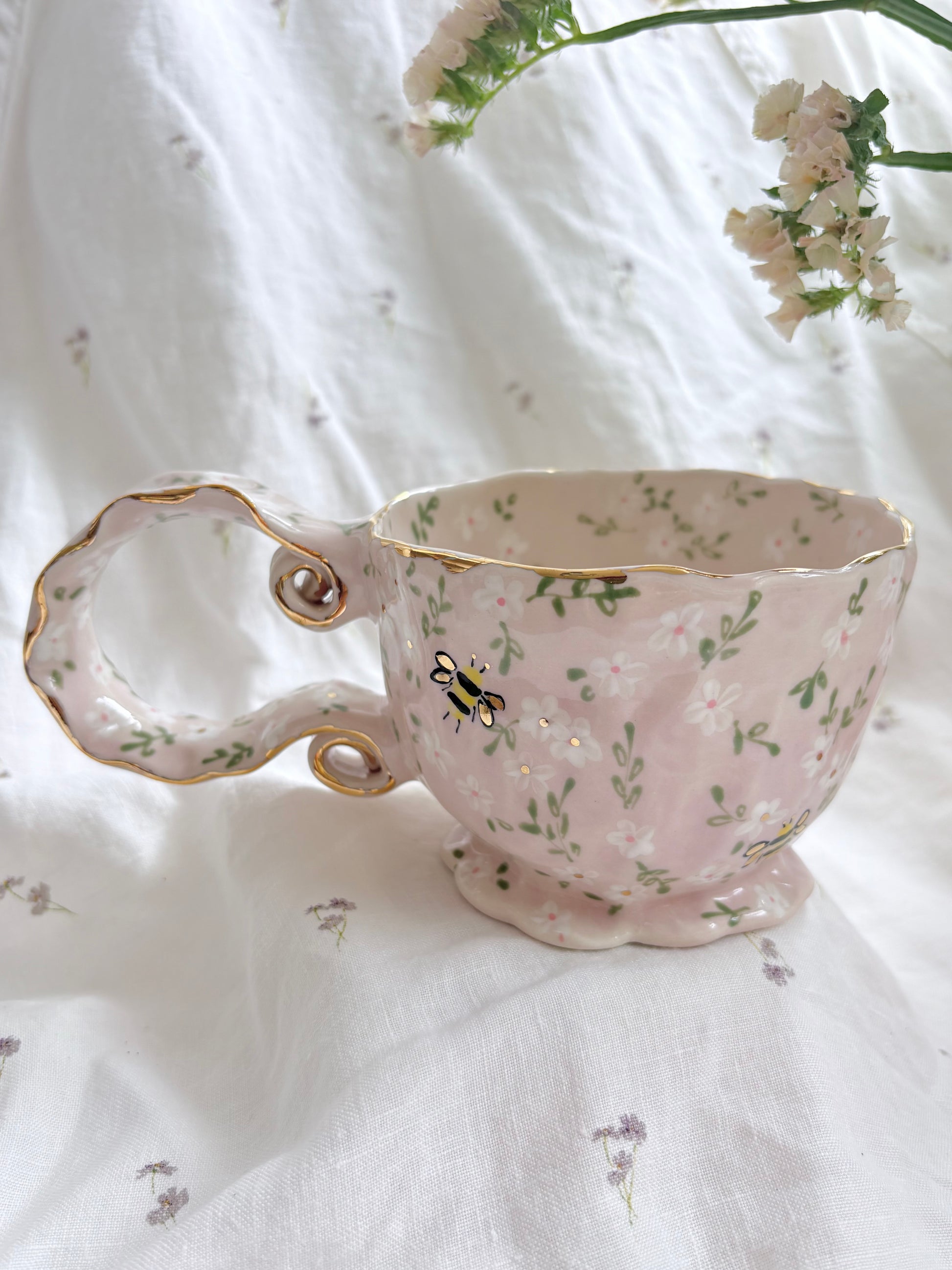 🧚made from mid fire clay, underglaze, food safe glaze and 14k gold lustre