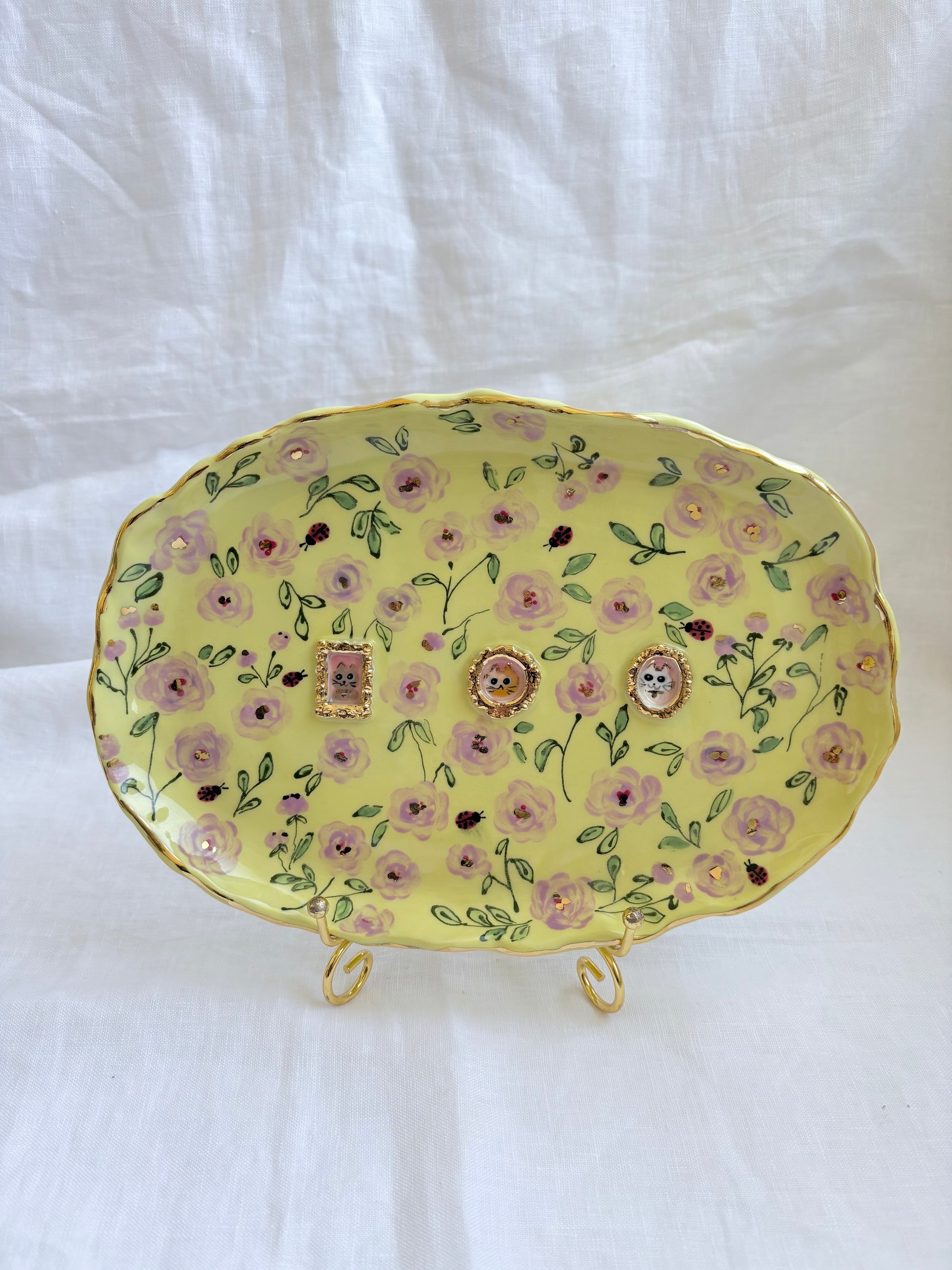 Heart full of Roses Gallery Plate 💐 💛 🐱 ✨Gold Lustre Item ✨