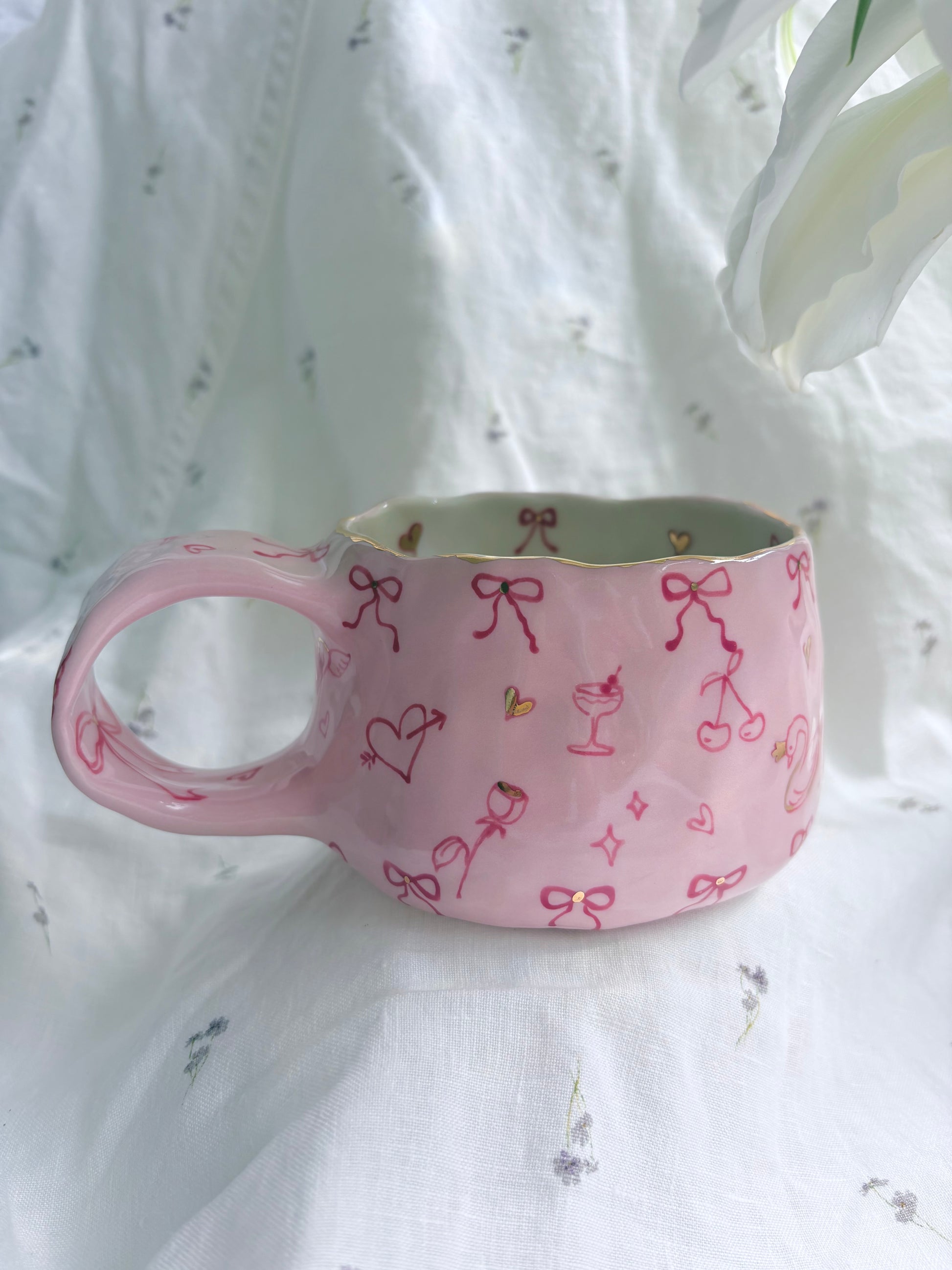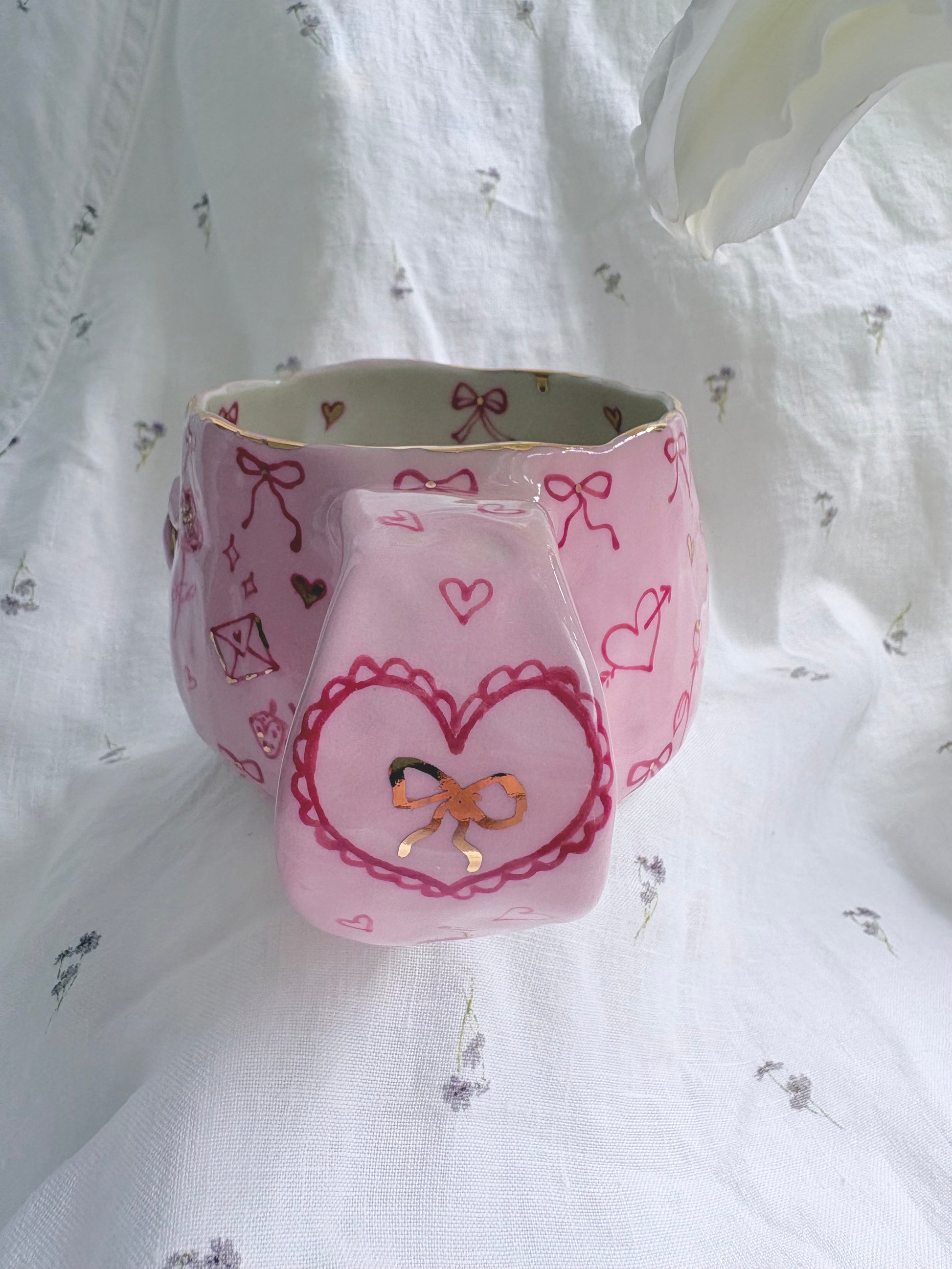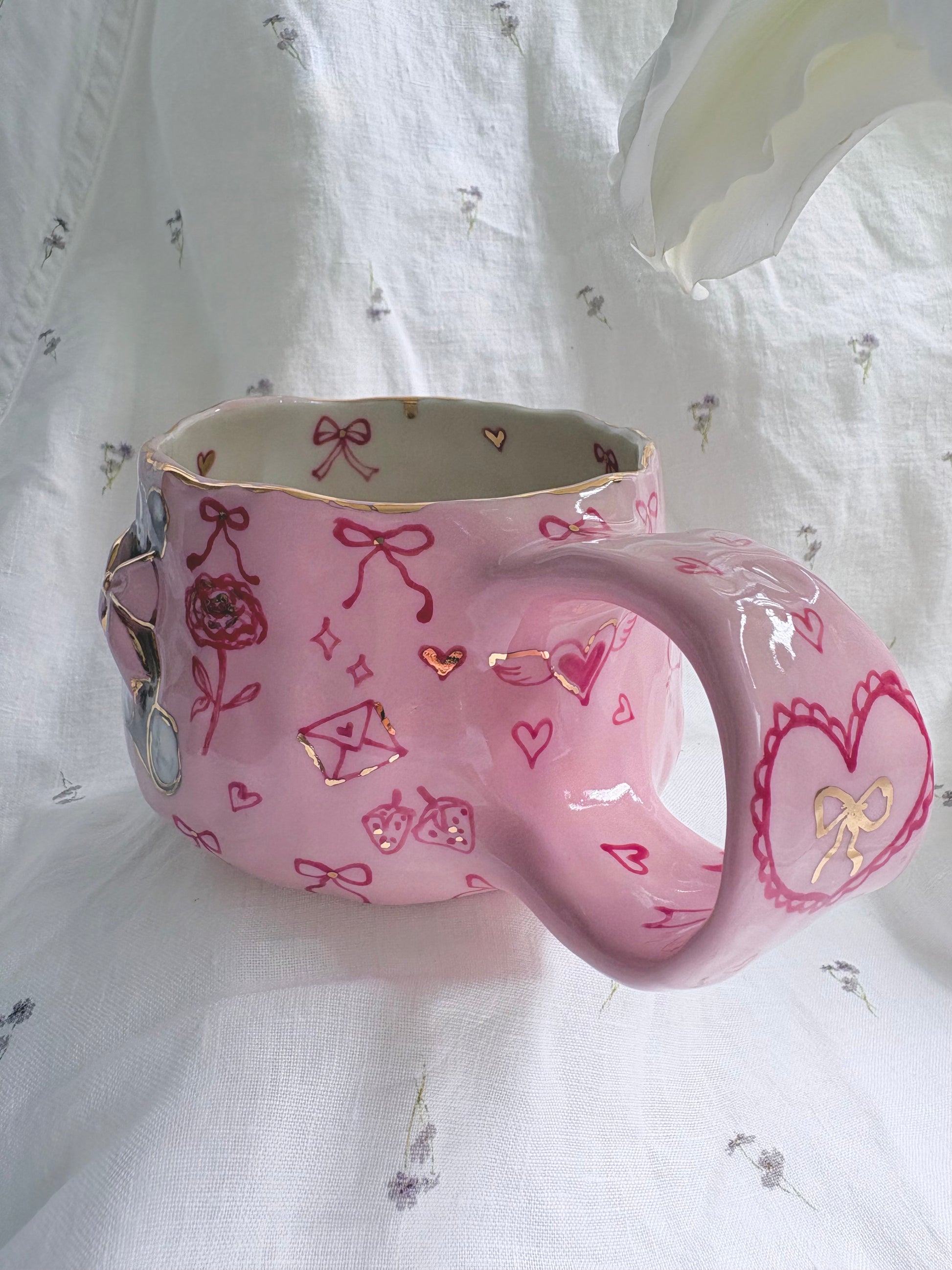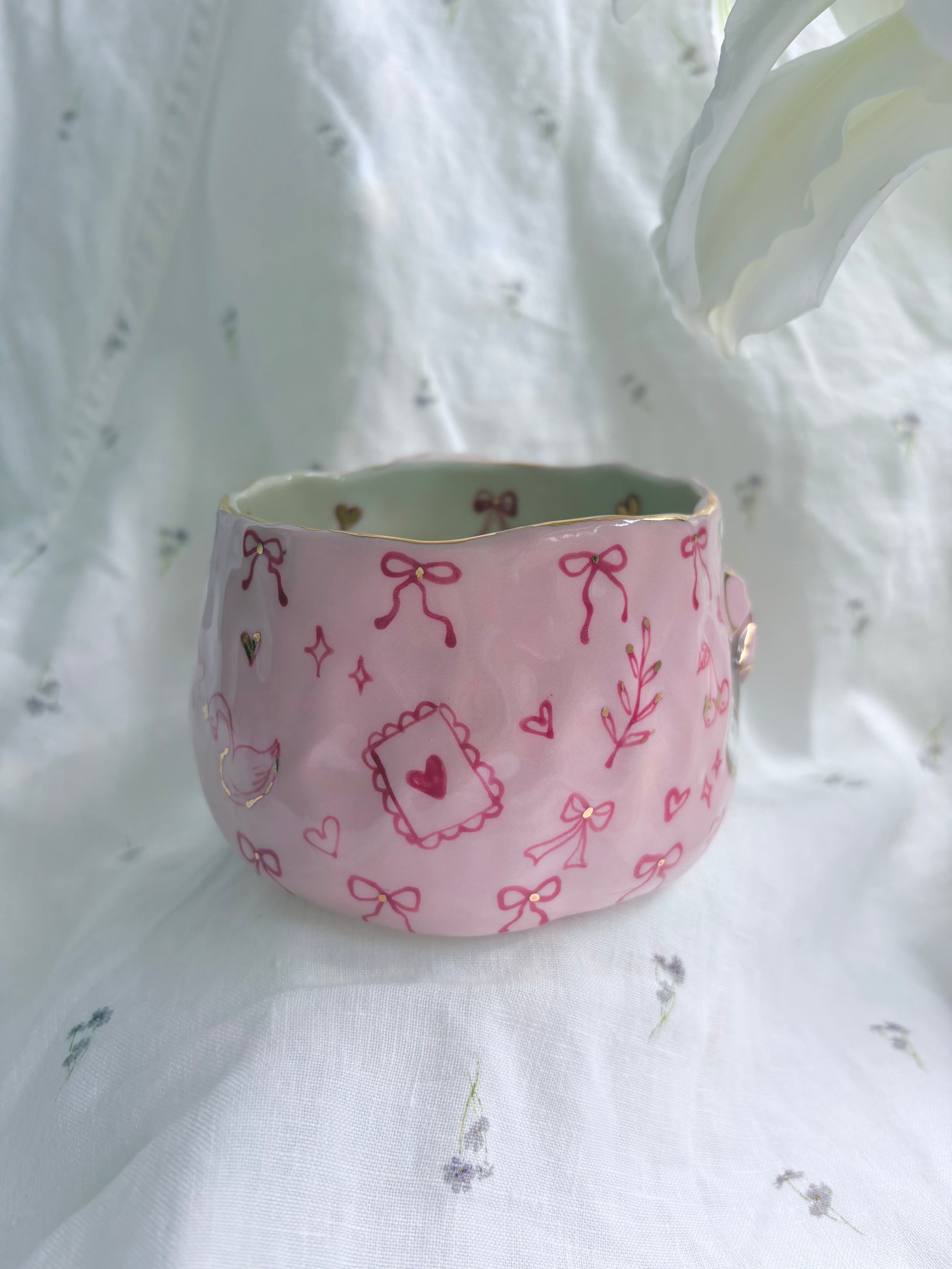 🧚made from mid fire clay, underglaze, food safe glaze and 14k gold lustre