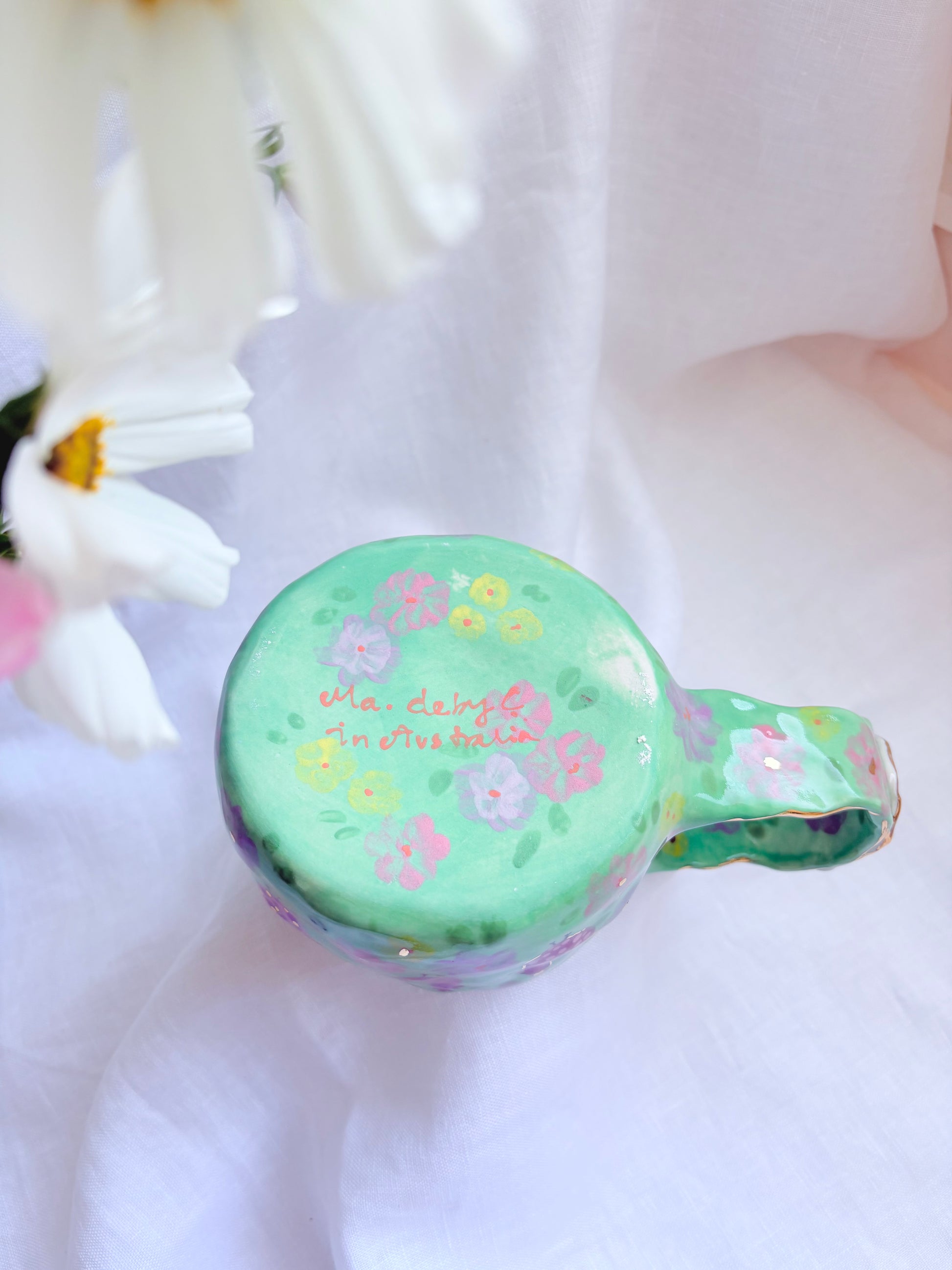 🧚made from mid fire clay, underglaze, food safe glaze and 14k gold lustre