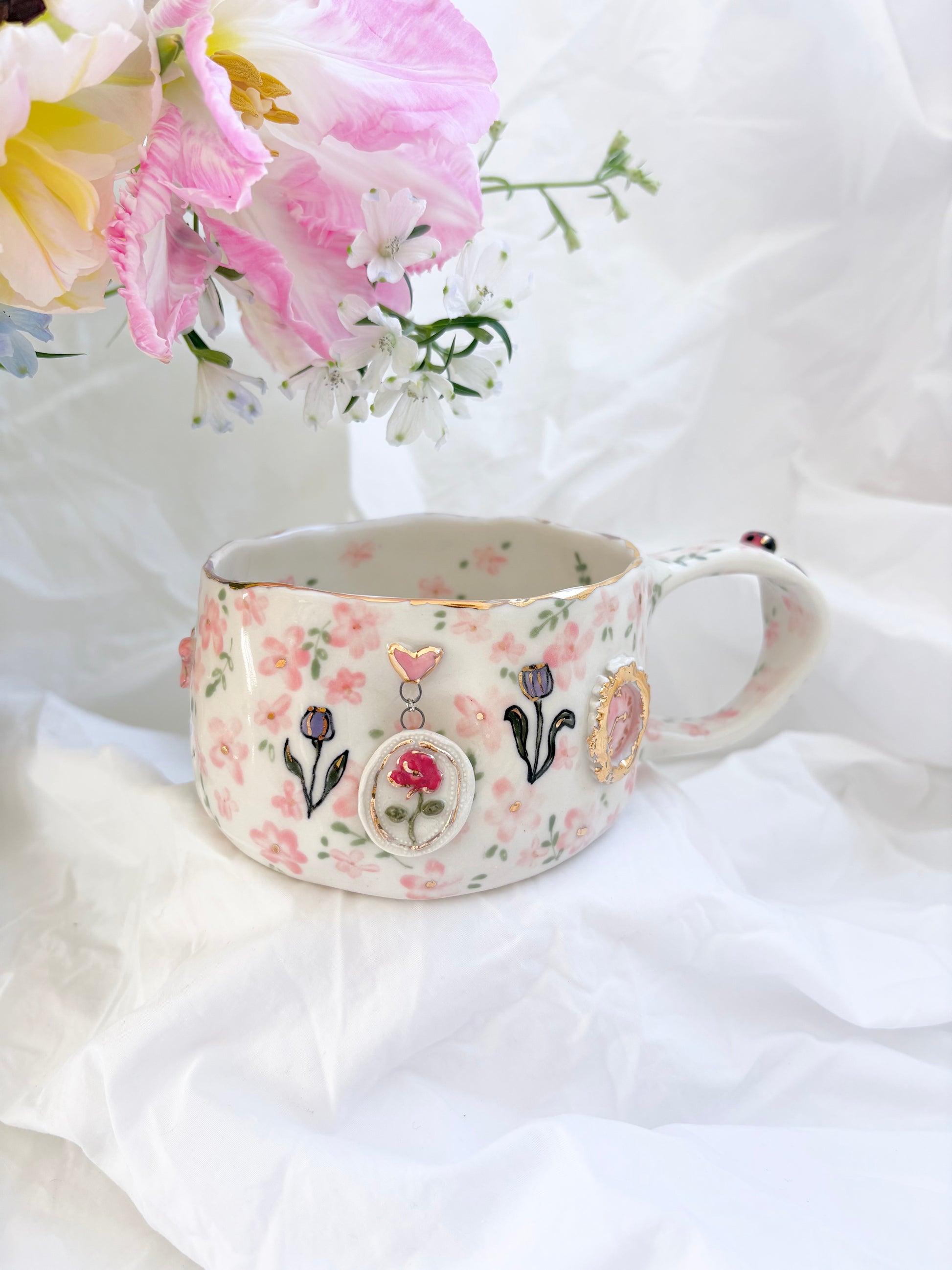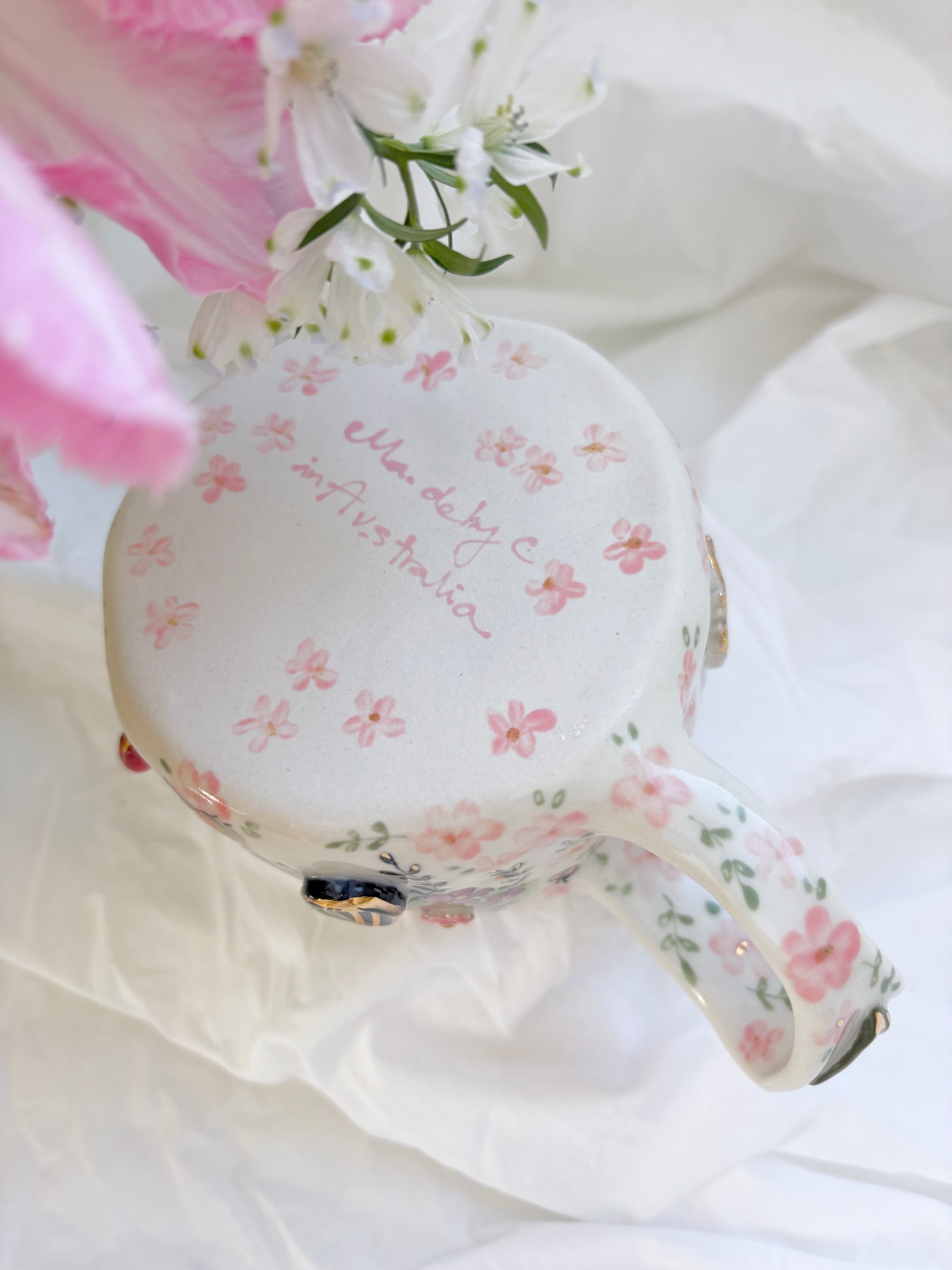🧚made from mid fire clay, underglaze, food safe glaze and 14k gold lustre