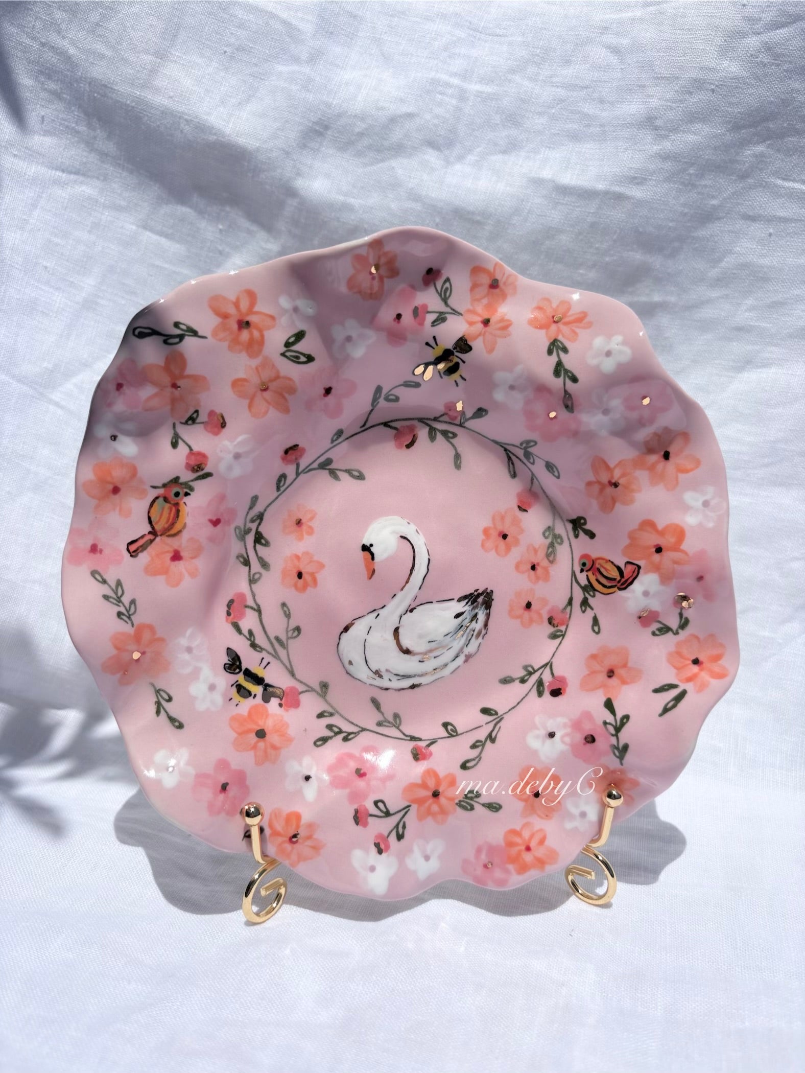 🧚made from mid fire clay, underglaze, food safe glaze and 14k gold lustre